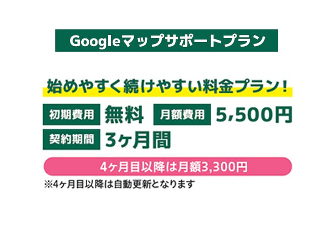 こうした部分を効率よく進めたい場合には、Googleマップサポートプランをご利用いただくことで安心して運用いただけます。