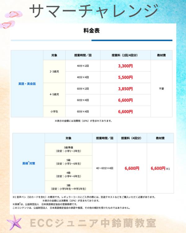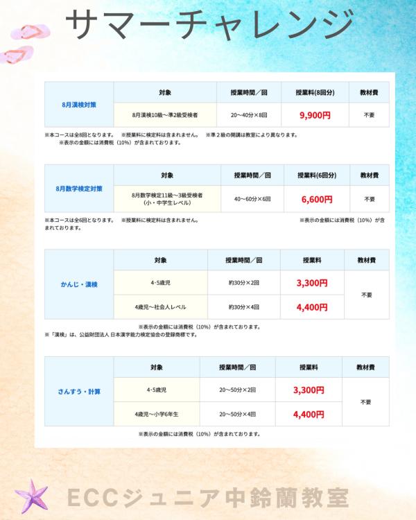 ECCジュニア中鈴蘭教室では、7月3日(木)〜8月19日(火)までの期間、