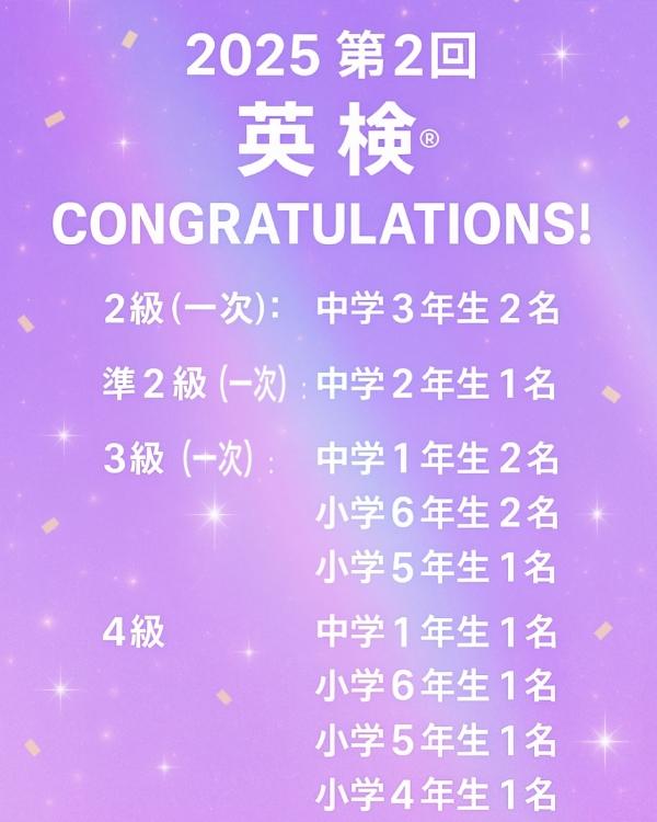 2025年第2回英検®二次試験 全員合格おめでとう!
