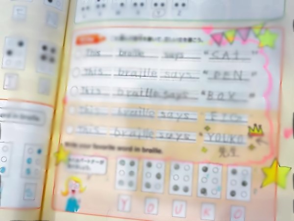 3.4年生クラスでは、点字について英語で楽しく学んでいます。ちなみに、前のユニットでは植物と虫の関係性を、その前のユニットでは、世界のさまざまな楽器についてを英語で学びました♪