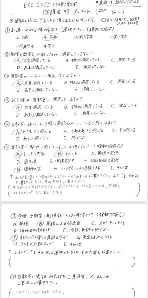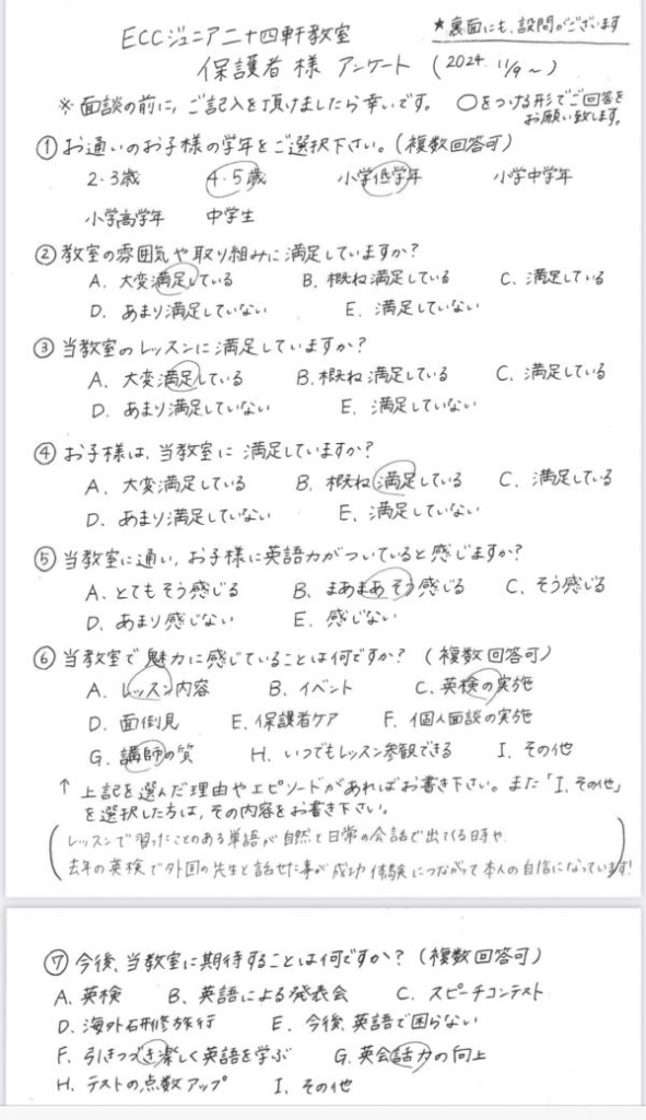 「ECCジュニア二十四軒教室のレッスンに大変満足している」