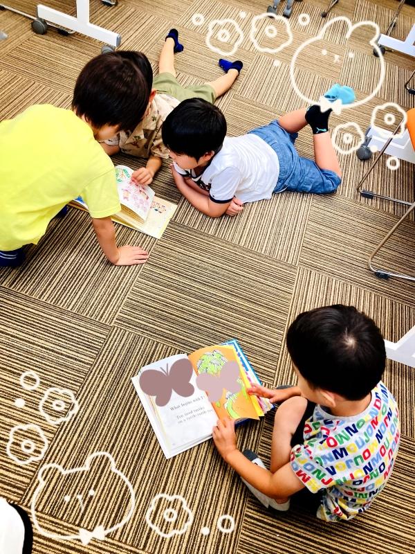 絵本大好き。幼児さんクラスでは、国語や算数の「まなびのさんぽ」と英会話のクラスがあります。間のお安いの様子。