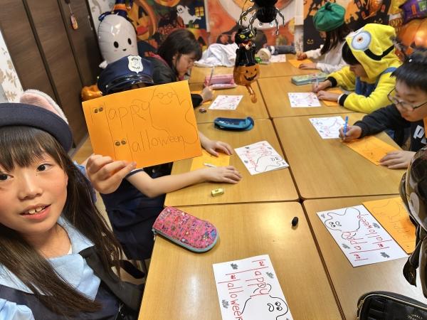 「先生、こんな感じですか」「そうそう」、来年のハロウィンパーティーは、何をしようかな?楽しみにしていてね。