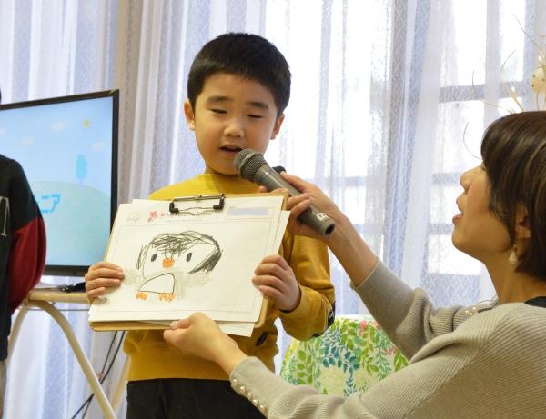 スーパーラーニングコースのReadingレッスンで読んだ絵本から、お気に入りの1冊を発表してくれました