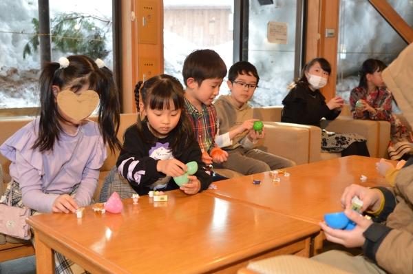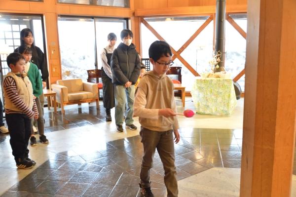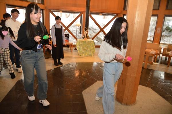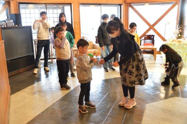 2チームに分かれて、スプーンでEggを運んでリレーをしました。