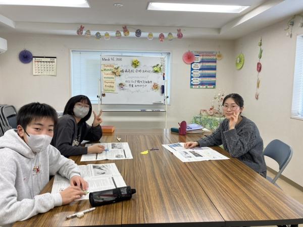 いつも教室に入ったら、日本語で話すのではなくて英語を話すことを勧めてくれて、英語と接する機会が増えて、すごく成長できたと感じます。いつも、ノートを返す時などていねいにコメントして返してくれたり、一つ一つミスがないかしっかりチェックして返してくれて、もっと自分自身成長していかないとと感じました。