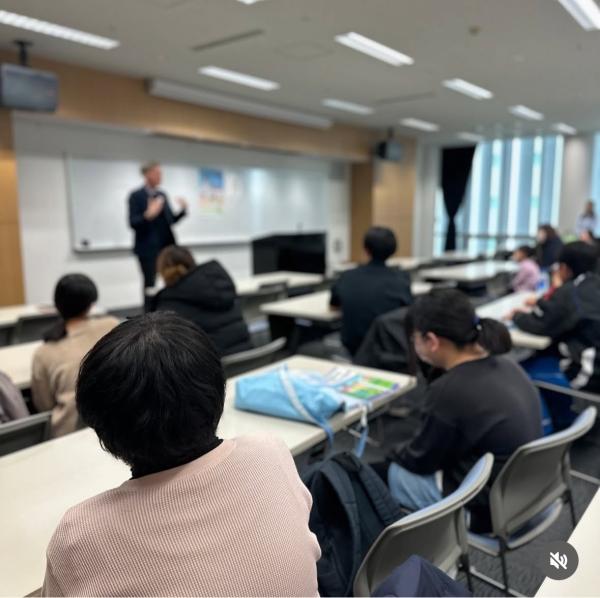 面接待合室に立ち寄った面接官と楽しそうに話す。生徒さん達。すごく盛り上がっていました。