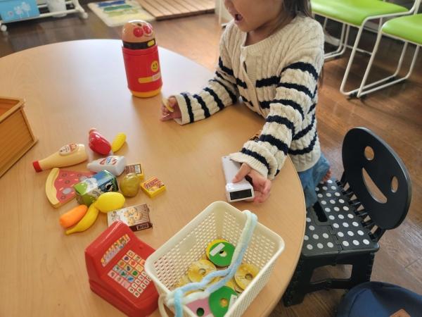 2・3歳クラス。単語を言いながらショッピングを楽しみます。