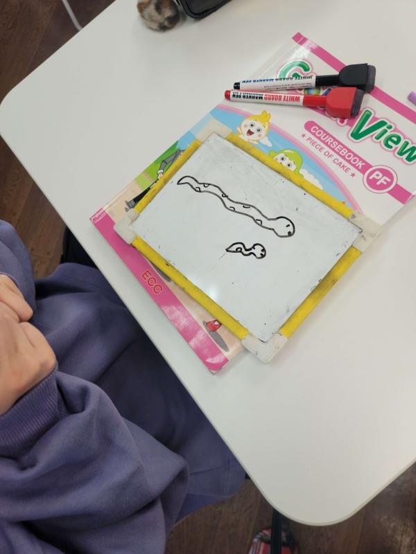 お絵描きしながら’long’ ‘short’ など基本単語を
