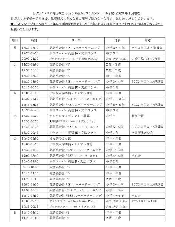 2026年4月にご入学をご検討の皆様、確認をお願いいたします。