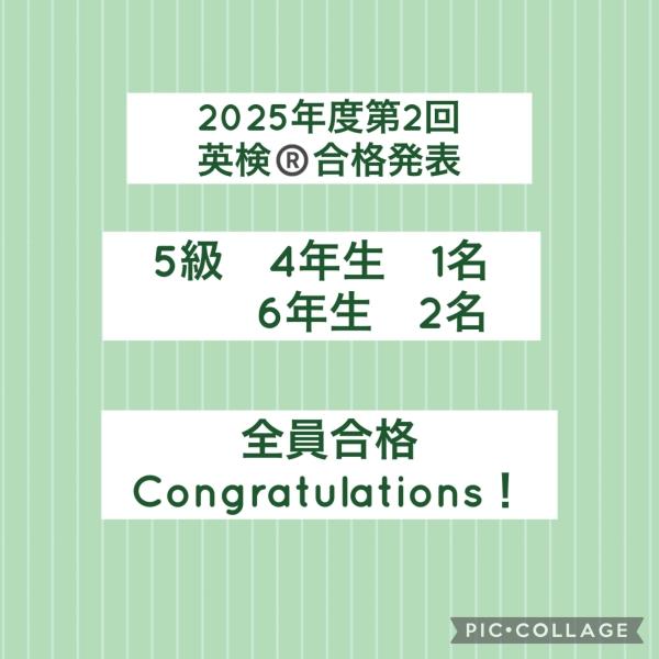 2025年度第1回英検®の合格者が発表になりました。日頃の努力が素晴らしい結果に結びついています!