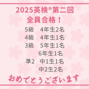【2025年度 英検®︎第2回合格速報!】