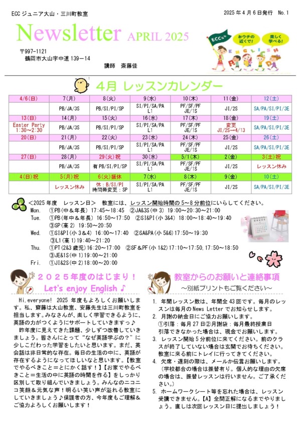 2024年度が始まり、2~3回のレッスンが終わりました。