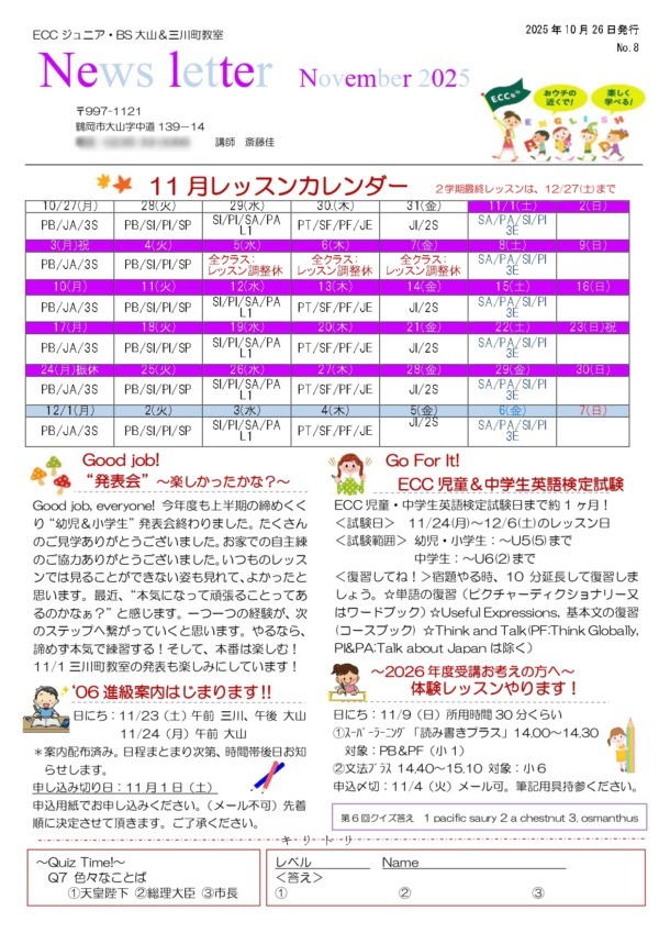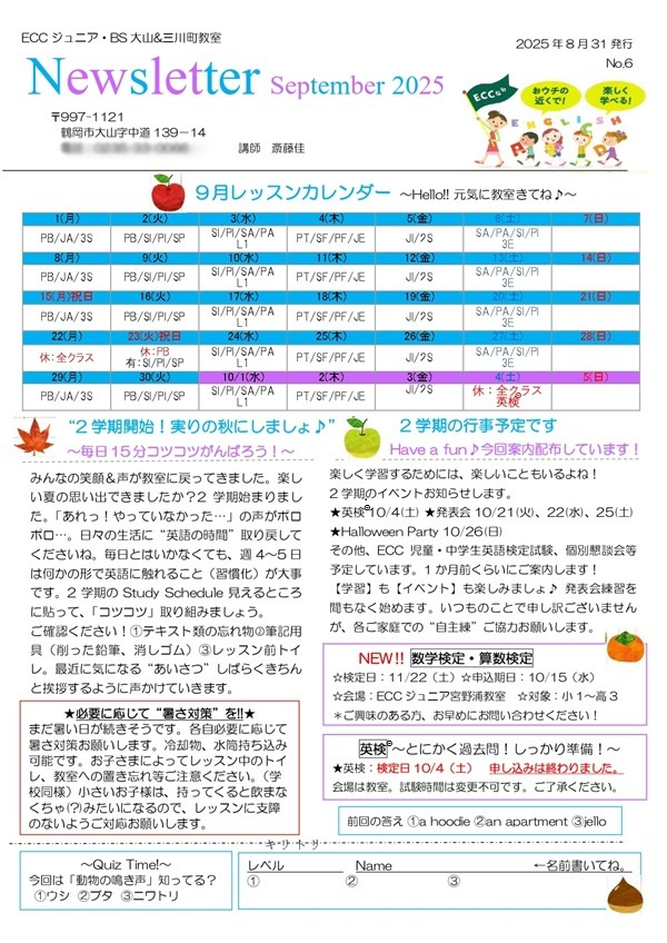 本物の英語力が身につく体験型レッスンへ、ぜひご参加ください。ECCジュニア大山教室でお待ちしてます♪