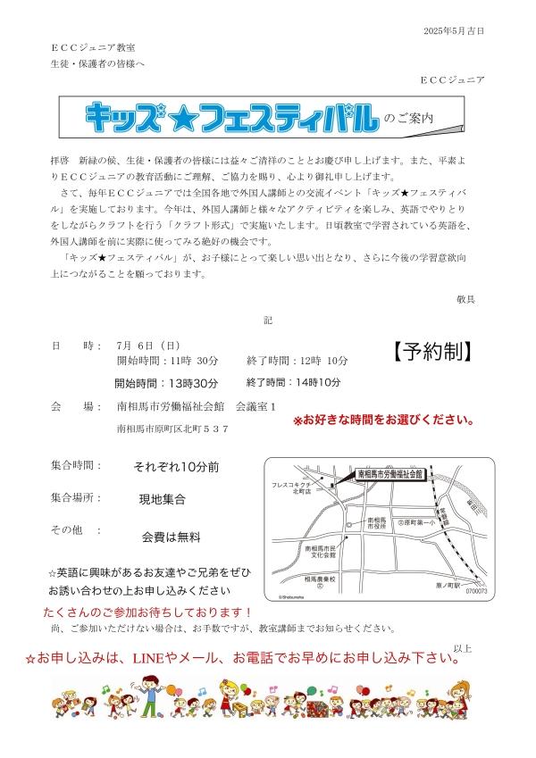 原町区旭町近隣で英語・英会話を子どもさんに楽しく学ばせたい方、お気軽にお問い合わせください!ECCジュニア原ノ町駅前教室でお待ちしてます♪