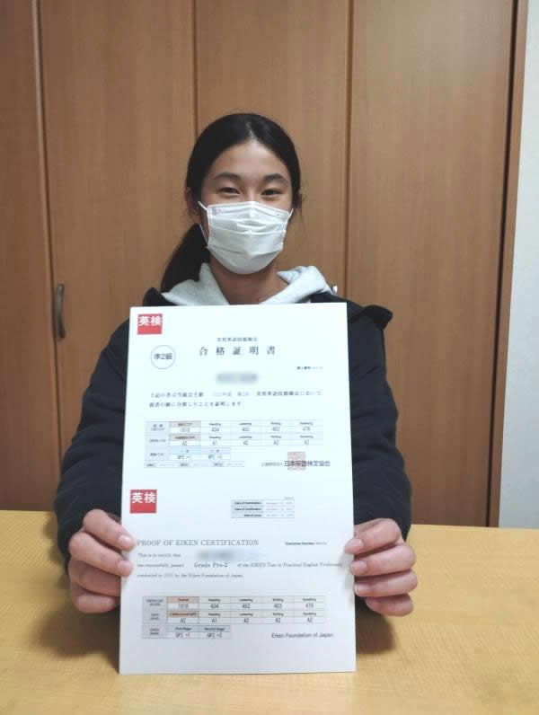 Sちゃん、小学6年生で準2級に合格!素晴らしい〜!今後の成長が楽しみです!