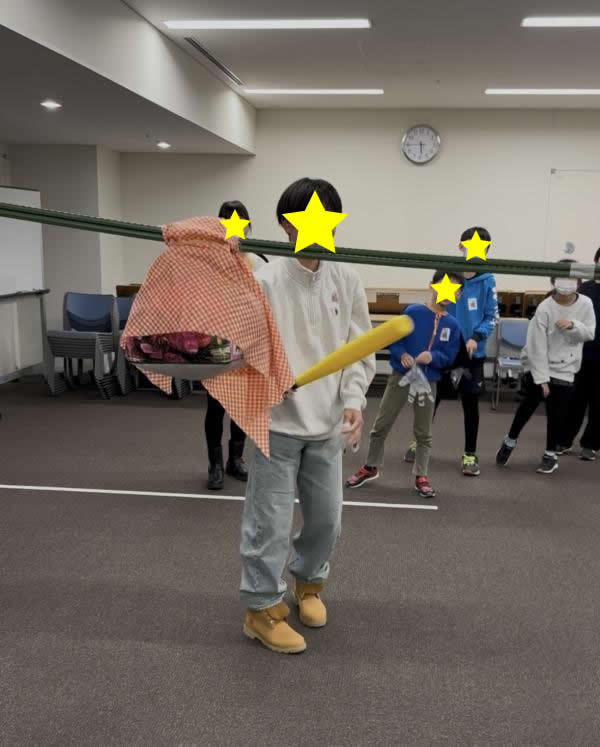 順番待ちの間にジリジリとピニャータに近づいてくるみんな…f^_^;