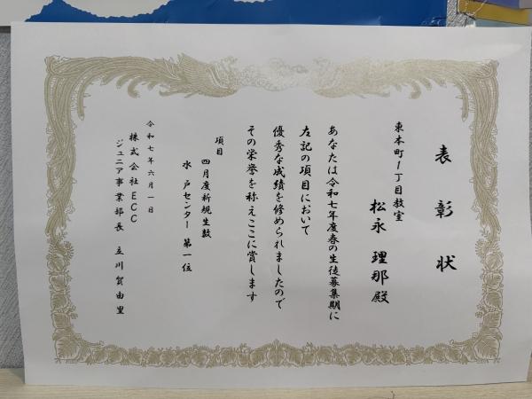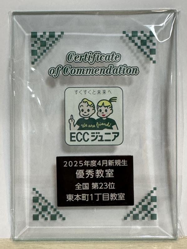 また、今年度の4月入学生徒数が全国で23位とのことで表彰いただきました。