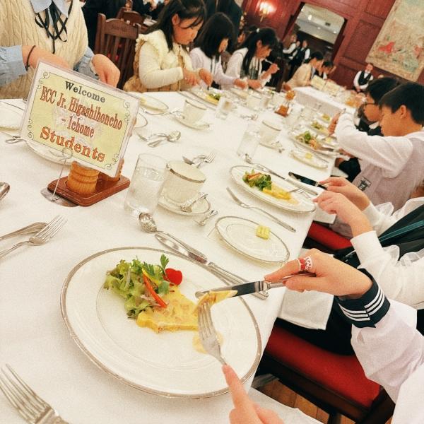テーブルマナー付きの講座を受け、その後コースディナーをいただきました。