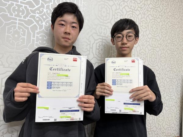 準2級2人、3級4人、4級2人、5級2人合格しました。