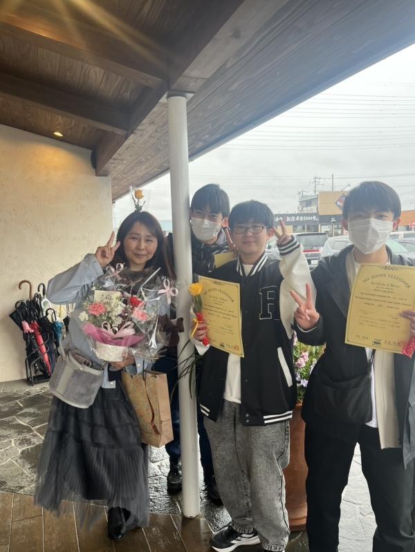 みんなと別れるのは本当に寂しいけど、教室に遊びに来てください。高校生になっても夢に向かって頑張ってね。応援しています。