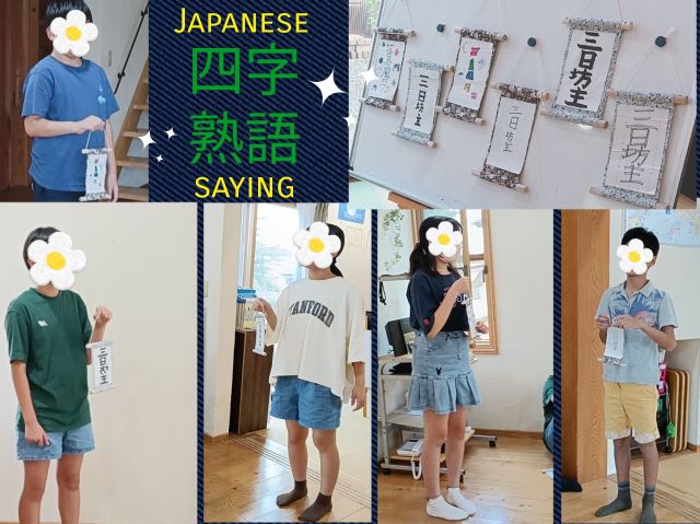 レッスンでならった3つ以外に他の四字熟語について学びました。電光石火 以心伝心 針小棒大 一日一善。さぁ英語で説明しているのはどれかな? 初見の英文を見ながらの作業でしたがさすがは6年生!分かる単語を駆使して逆にお家の人に教えている姿が見受けられました。