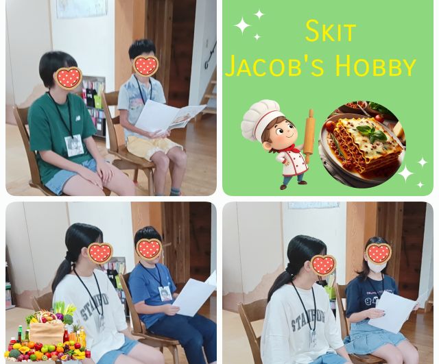 教室でクラスメートがおしゃべりしているなんてことない日常会話を英語で演じました。なんとJacob君、週に2回も家族のために夕飯を作っているとは!!Ayaの驚きも上手に表現できていましたね。