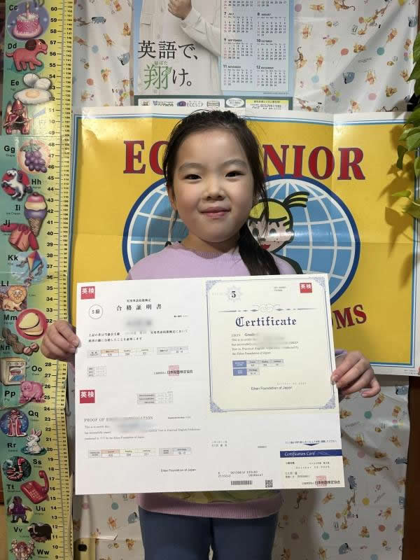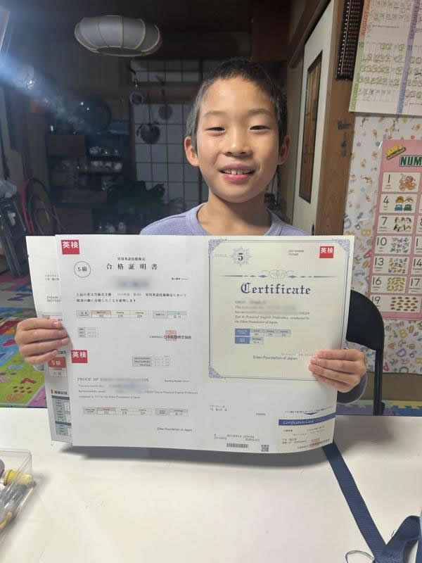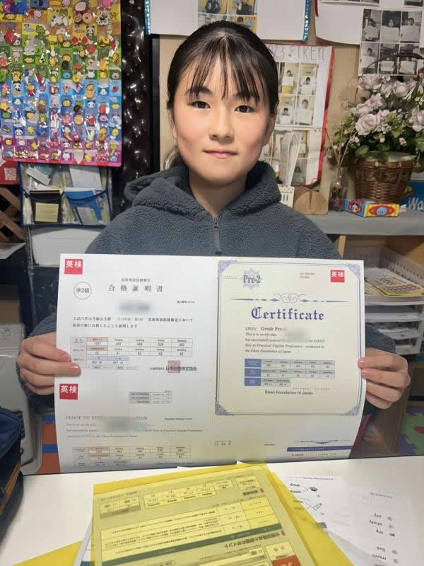 小学5年生でなんと準二級合格者が出ました!とても素晴らしいです!