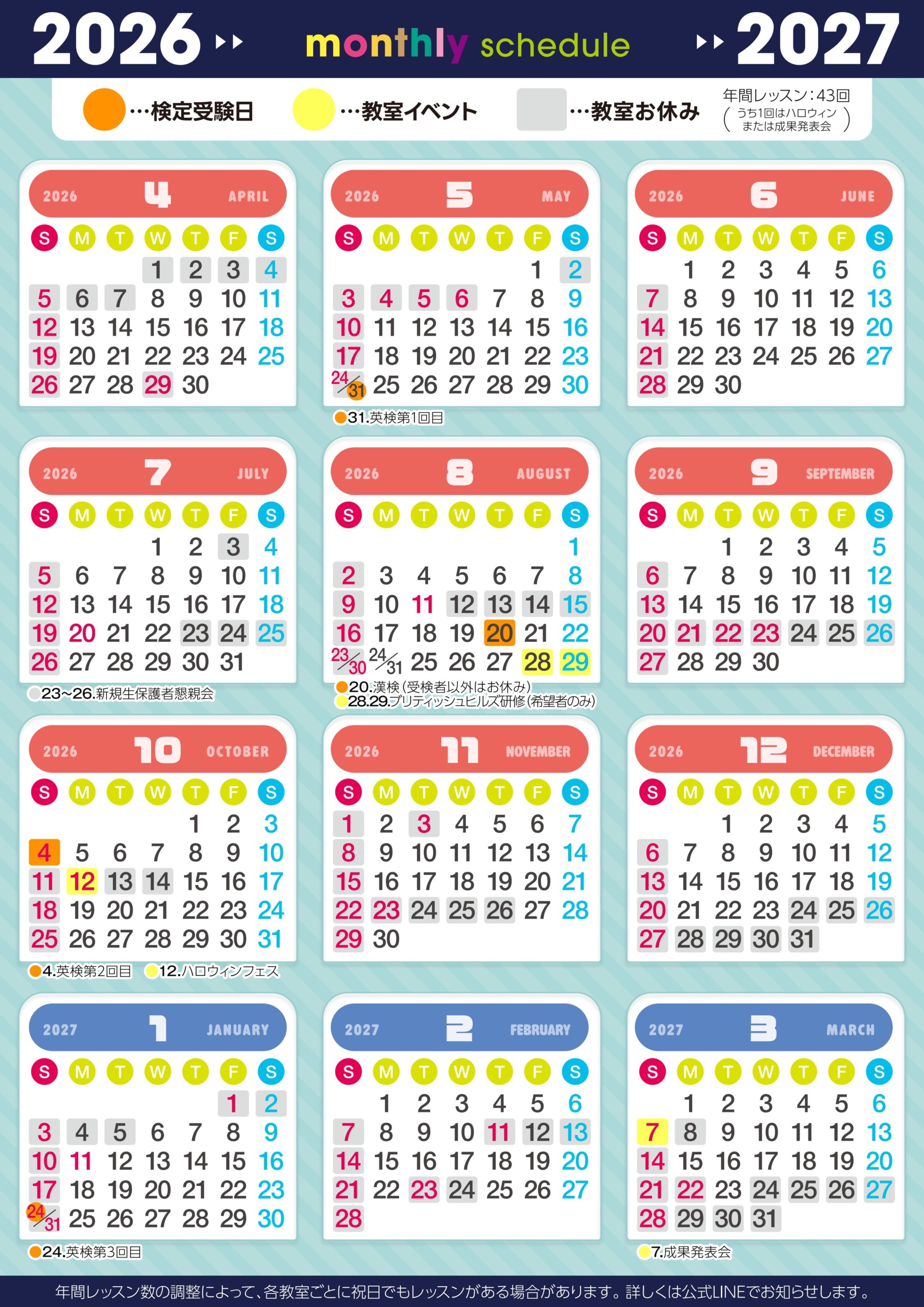 最寄りのお教室の曜日や時間が合わない場合も、近隣のお教室の時間割を見てみてください。