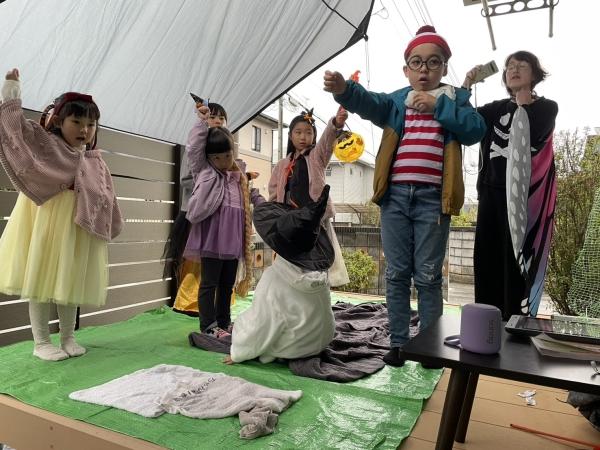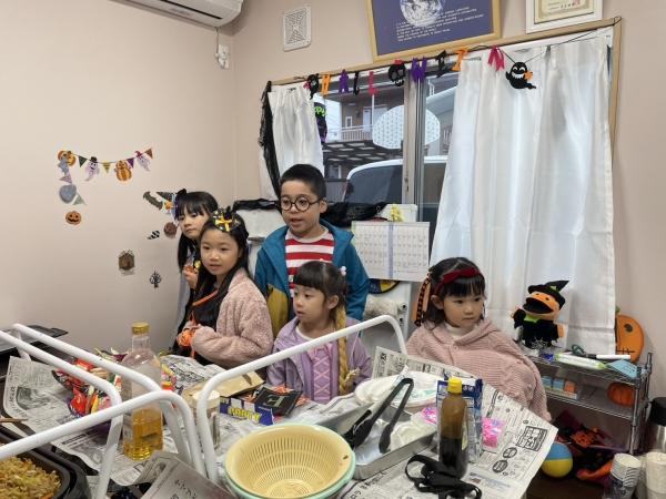 ハロウィンアクティビティやゲームをしたり、幼児、小学生のレッスン発表もしました。今回は、砥上町の新しい教室での、焼きそば会食もあり、賑やかな時間になりました。
