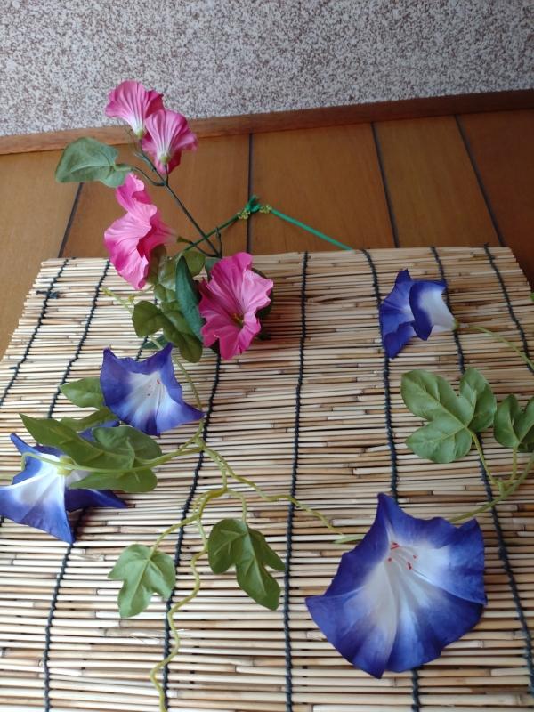 先日は朝顔のタペストリーをすだれにくくりつけて夏らしく飾っておりましたら