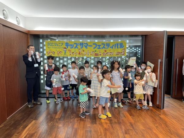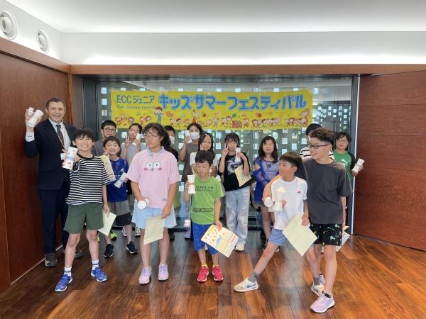 リチャード先生との英語ゲームから始まりクラフトでは、紙コップを使ってけん玉を作りました。