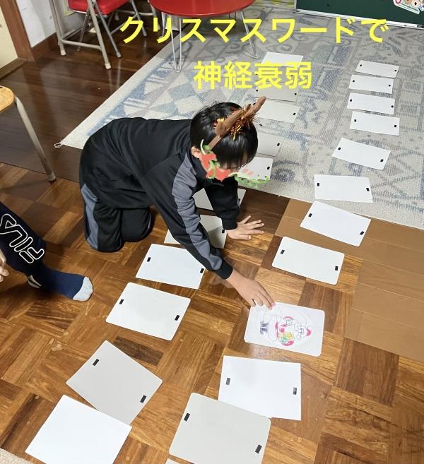 クリスマスワードで神経衰弱。 英単語が言えると20点。言えないと10点。
