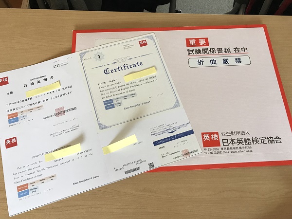 高校3年Eくんからの準1級初挑戦での一発合格の知らせでした!
