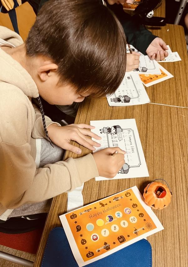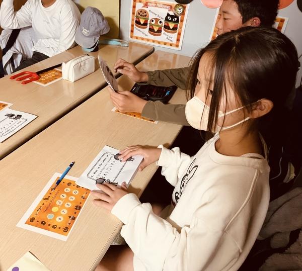 10月31日ハロウィン当日は残念ながら雨模様。トリックオアトリーティングは断念し、高学年クラスのハロウィンパーティーは【ECCだもん☆ ︎英語で謎解きゲーム大会】を開催いたしました。謎が解け、答えがひらめいた時のなんとも言えない(^^)いいお顔、たくさんいただきました。