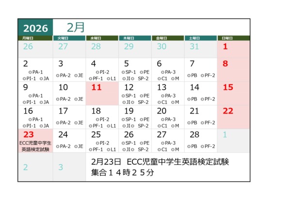 他にECCジュニア主催のイベントで、キッズサマ―フェスティバル、ECC児童英語検定一次筆記試験、二次ネイティブ講師との面接試験があります。