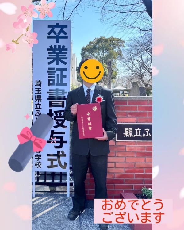 一足先にに卒業していた生徒さんからも、高校卒業式当日にメッセージと写真をいただきました。