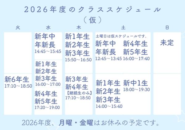 現在、土曜日クラスへのお問い合わせが増えています。