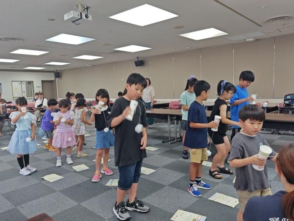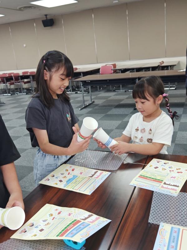 毎年楽しみにしているnative の先生とのお楽しみ時間であるキッズフェスティバル。今年はゲームに加えてオリジナルけん玉作りをしました。みんなの笑顔が楽しさを物語っていますね。