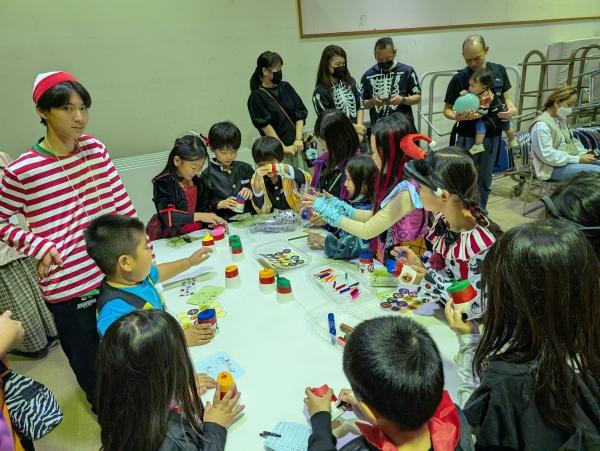 クラフト作り。みんな好きなシールを貼ったりデザイン描いたりしたよ。