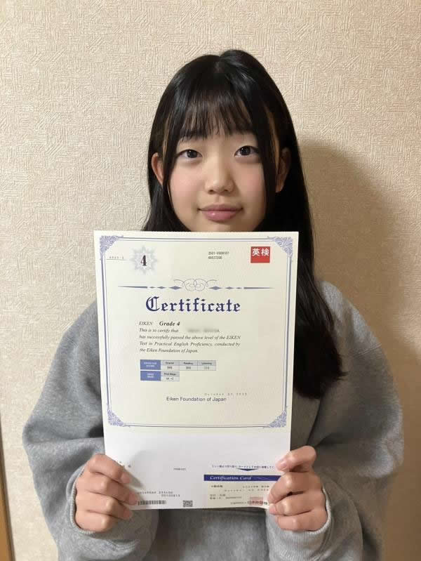 小5のSちゃん、4級合格。不安はたくさんあったけど、毎日コツコツと頑張りました!