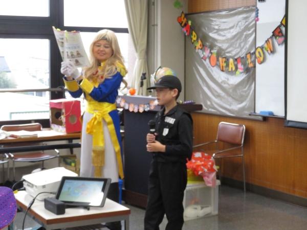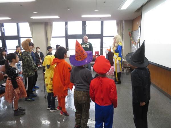 (2)アクティビティタイム:色鬼、ジェスチャーゲーム、What’s in a Box?、ビンゴなどを行いました。ゲストとして参加してくれた講師の友人スティーブン(米国出身)との Q&Aタイムには、質問が飛び交いました。 最後に、様々な衣装の参加者の中から、コスチュームキング&クイーンが選ばれました。