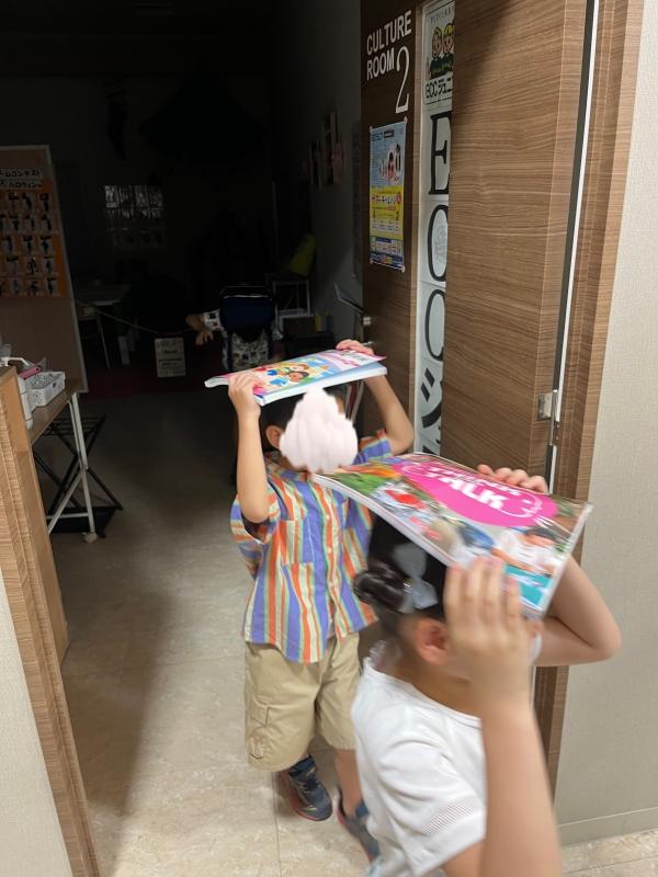 テレビは明かりとりで点けてますが、実際は真っ暗になります。頭を守る!