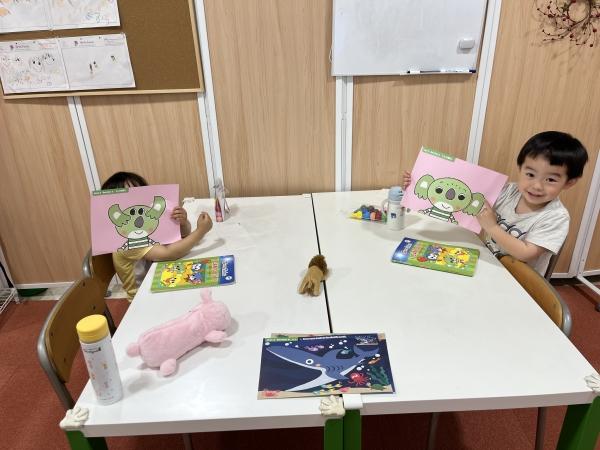 年少児クラス。 お絵描き大好き! 英語の形の認識からのサークル色塗り。