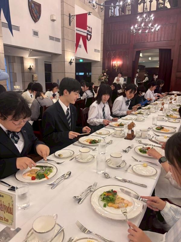 始めての本格コース料理に、緊張気味な生徒たちです。