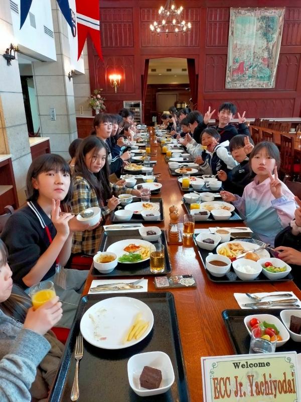 朝食と昼食はビュッフェ。緊張したコースディナーとは打って変わってみんなリラックスして好きな物を好きなだけいただきました。