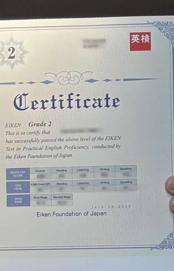 T君、英検®︎2級合格おめでとう!英検®︎準1級合格ラインを超えました。
