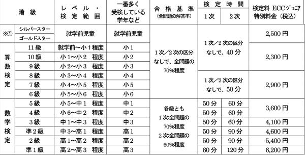 検定料:級により異なります