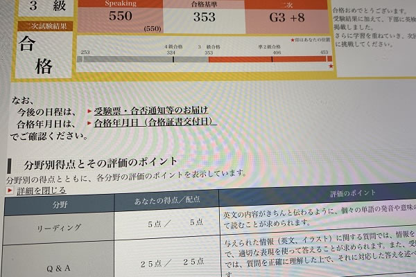 英検®二次の結果表が届きました。次は2020年10月11日開催です。