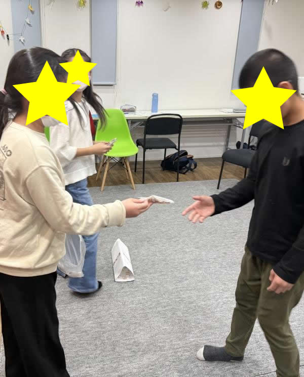 入所者様の前で英語の寸劇やダンス、歌を披露した後、おひとりおひとりからお菓子をいただきました。